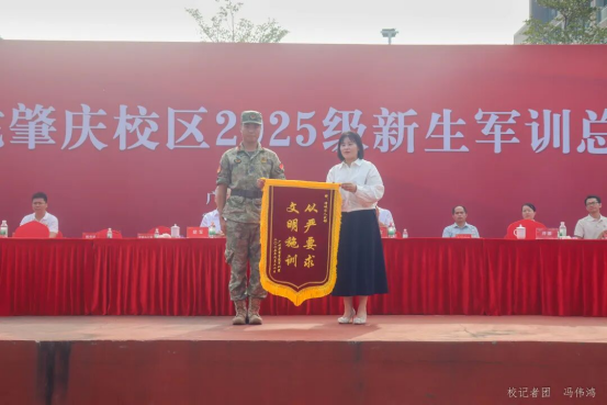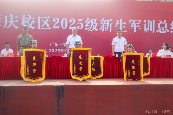 在两校区大会上,学校党委书记陈玉欢和副校长余家军分别宣读《2025级新生军训表彰决定》。在颁奖仪式上,主席台领导依次为荣获先进营称号、标兵连队称号、先进连队称号、精神文明连队称号的连队及荣获优秀教官、军训标兵称号的教官、新生颁奖。