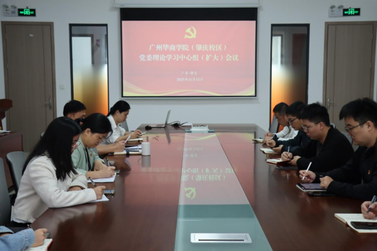 2025年11月12日上午,广州华商学院(肇庆校区)党委理论学习中心组(扩大)会议在2号楼311会议室顺利召开。党委理论学习中心组成员及各支部书记出席了本次会议。