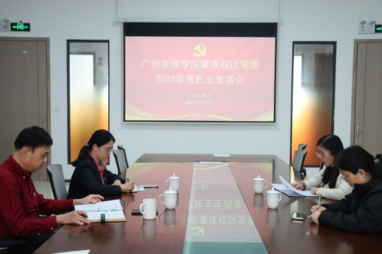 1月29日,广州华商学院肇庆校区党委于2号楼311会议室召开2025年度民主生活会。会议紧扣主题,深入学习贯彻习近平新时代中国特色社会主义思想,认真落实党的二十届四中全会精神和习近平总书记重要讲话精神,聚焦落实中央八项规定精神、推进作风建设常态化长效化。