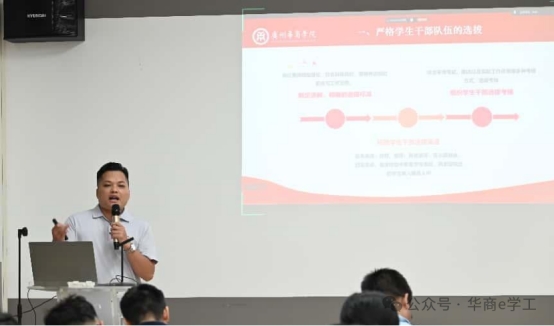 2025年6月11日,教师教育学院江庆基副主任围绕“党团班级建设和学生日常事务管理”分享经验。他结合具体案例,讲解党团引领作用、班级管理策略及事务处理要点,为辅导员提供实操范例。随后,创意与设计学院钟纯主任阐述辅导员开展理论与实践研究的要点与途径。他表示辅导员需紧跟时代步伐,持续提升科研能力与专业素养,为学生工作筑牢理论根基。