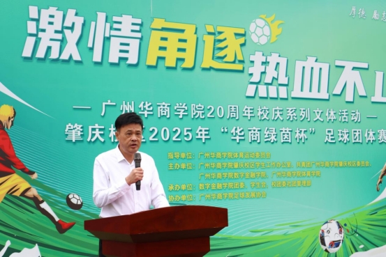 广州华商学院肇庆校区党委书记苏宁,后勤保卫办公室主任徐强,肇庆校区学生工作办公室副主任古文胜,肇庆校区党委委员王容章,广州华商学院团委老师何以立,各二级学院团委书记、副书记、学生会指导老师,以及运动员代表、裁判员代表等师生齐聚现场,共同见证这场以足球为媒介、为校庆增辉的青春盛宴。