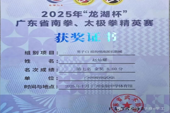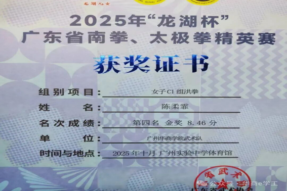 当南拳的刚劲遇上太极的温润,当青春的热血碰撞专业的赛场--由学校党委武装部、“一站式”学生社区联合组建的华商学院武术队,在2025届“龙湖杯”广东省南拳、太极拳精英赛中奋勇拼搏,凭借扎实的功底和出色的表现,斩获集体赛金奖及6项个人赛金奖、3项个人赛银奖,用10枚奖牌为学校“五育并举”、“三全育人”写下生动注脚!